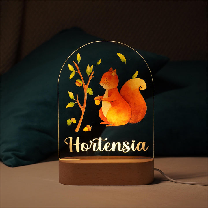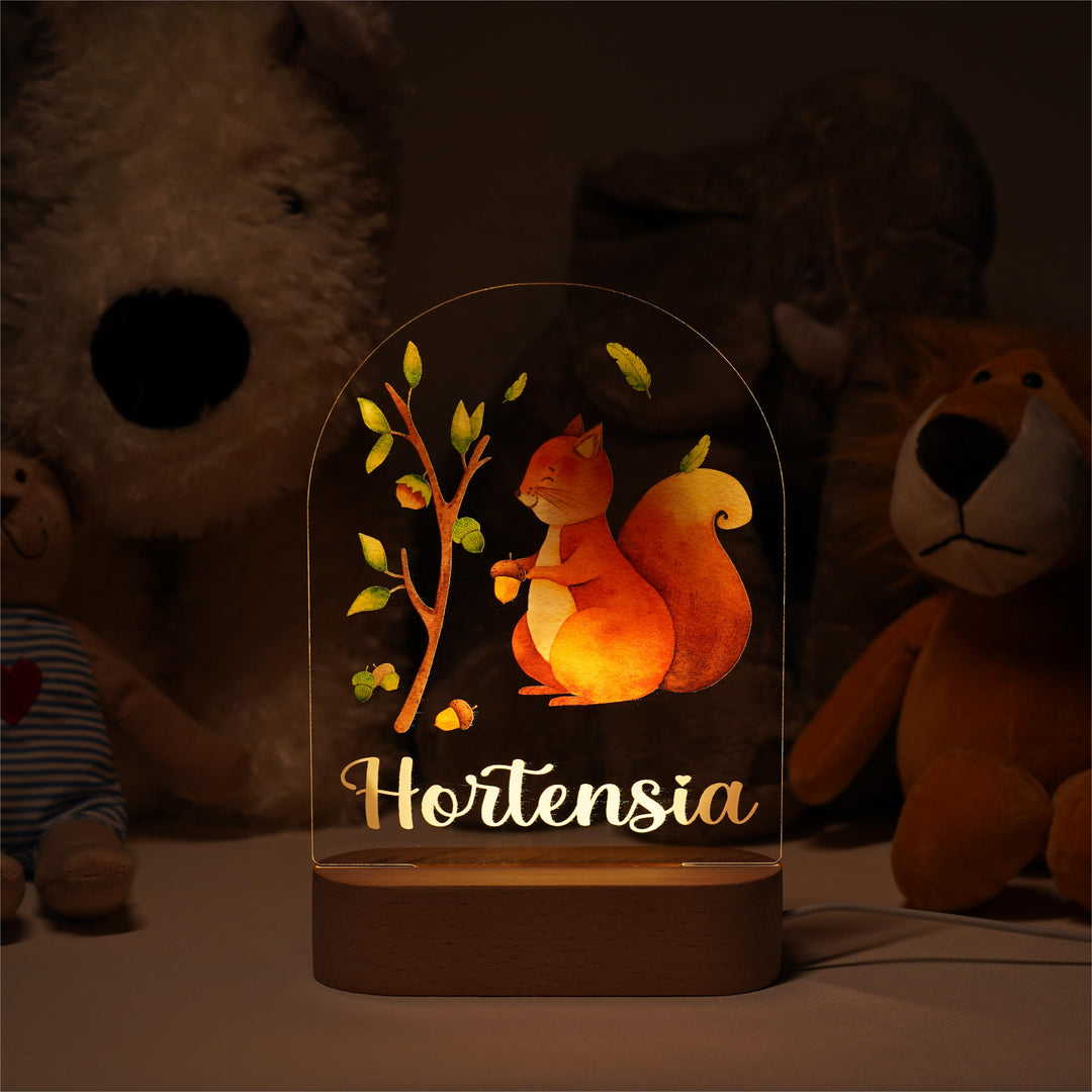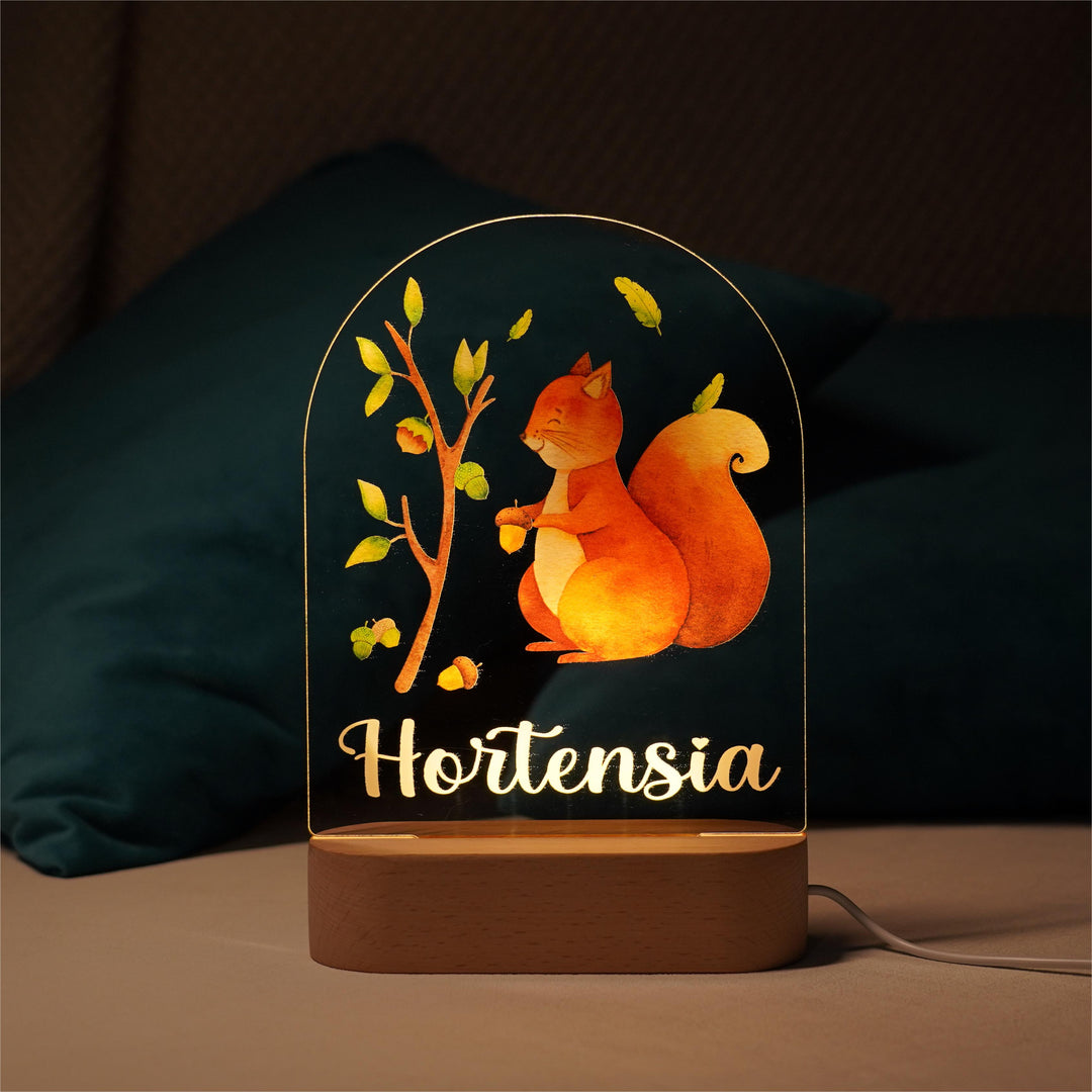 Tilføj noget skov charme til sengetid med vores personlige egern natlys. Det legende egerndesign og blide belysning gør den perfekt til en hyggelig og trøstende søvn.