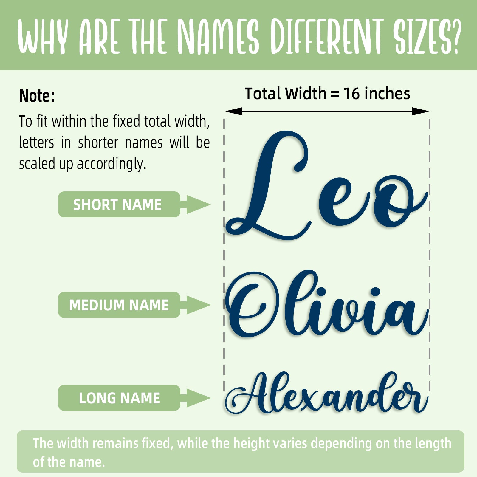 Note: Final size may vary slightly based on name length and design proportions.