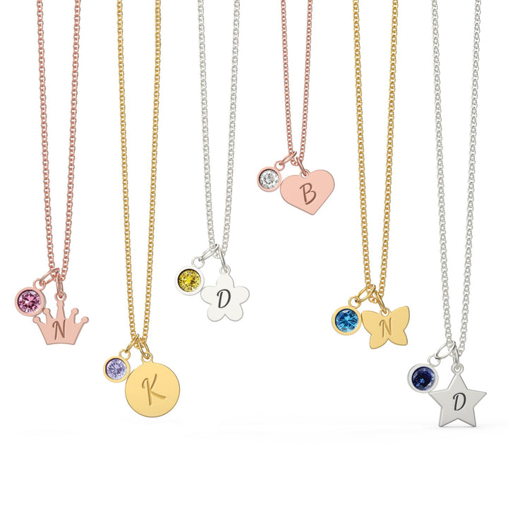 Personalisierte Kinderhalskette mit Initiale und Geburtsstein