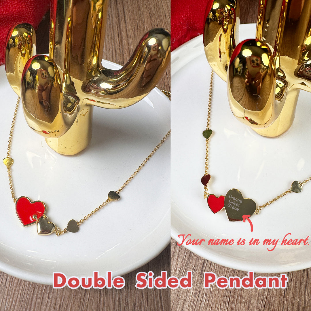 - Herzliche Symbolik: Das zentrale Element ist ein Herzpaar – eines aus leuchtend roter Emaille und ein kleineres Gegenstück aus Silber –, das die Eltern-Kind-Verbindung symbolisiert.