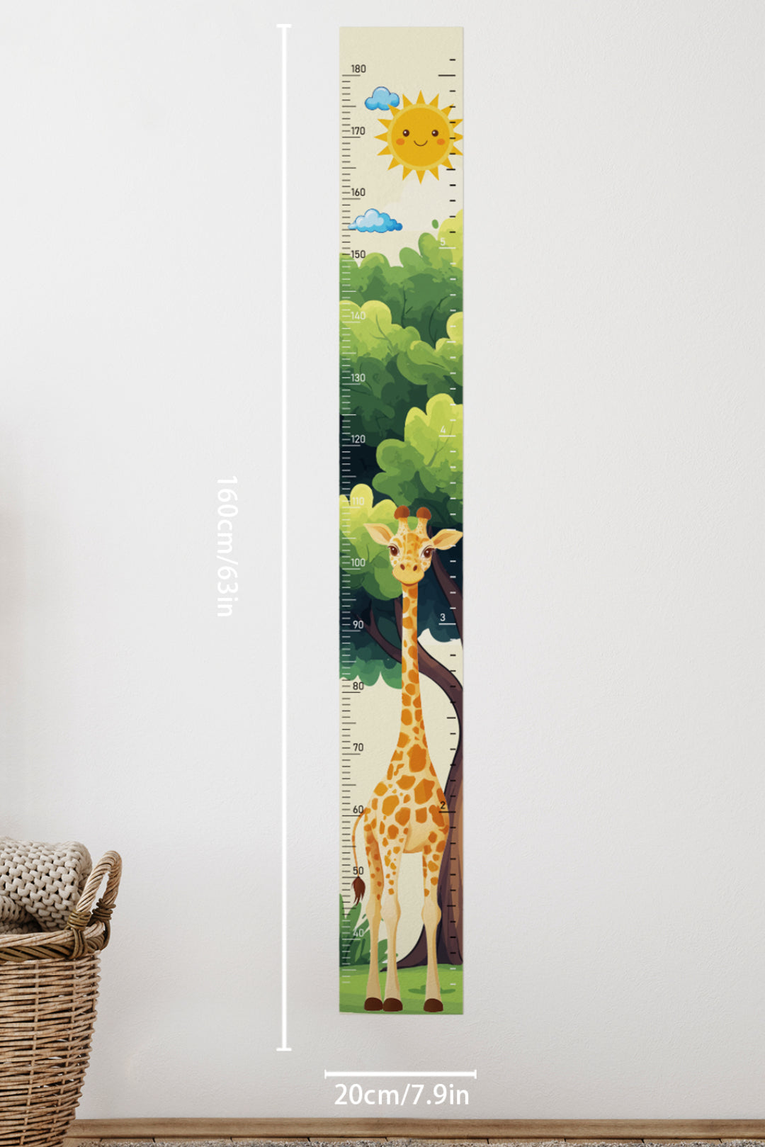 Bringen Sie den Charme der Natur ins Zimmer Ihres Kindes mit diesem entzückenden Giraffen-Wachstumsdiagramm! Mit einer fröhlichen Giraffe, umgeben von üppigem Grün und einer strahlenden Sonne, kombiniert dieses Höhenmessgerät Spaß und Funktionalität und ist die perfekte Ergänzung für jedes Kinderzimmer oder Spielzimmer.