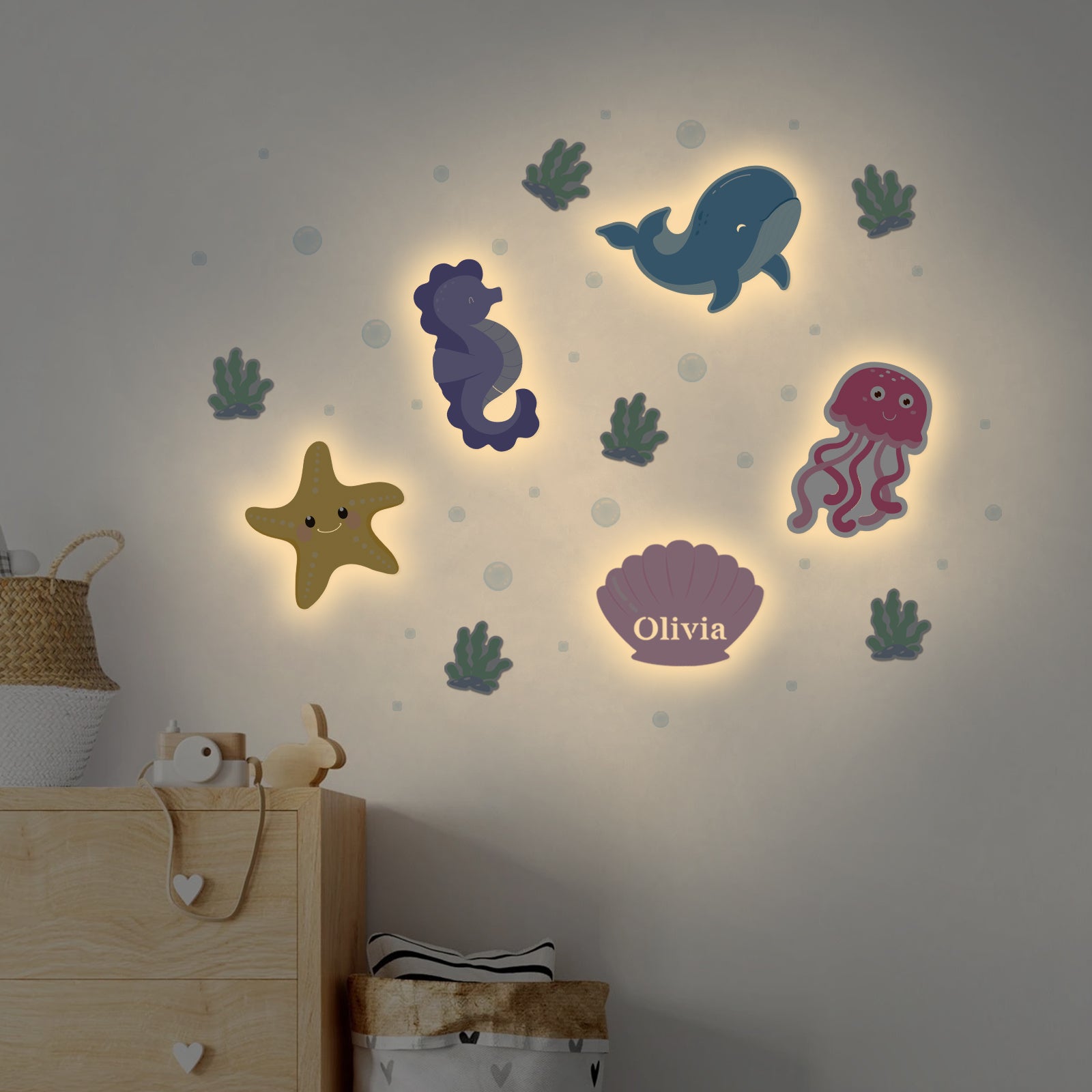 Personalized Wooden Baby's Room Wall Light Set – Ocean Theme