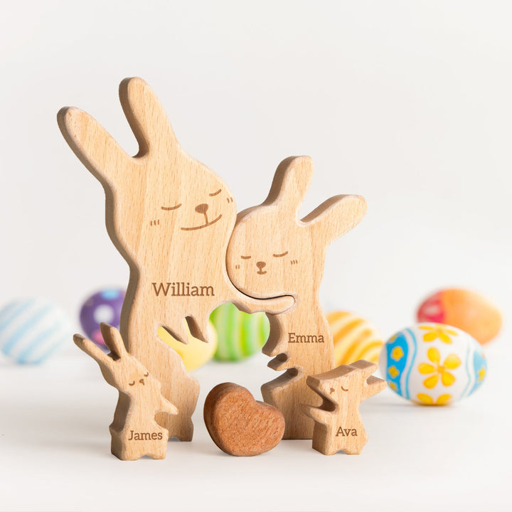 Personalized Wooden Cute Rabbit Family Puzzle Decor