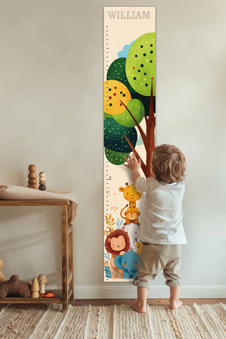 Unique Children's Gift - Wooden Jungle Animal Growth Chart