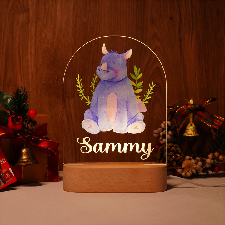 Our Personalized Rhino Night Light adds a touch of adventure to your child's room. The strong rhino design and gentle glow help your child feel protected and secure at night.
